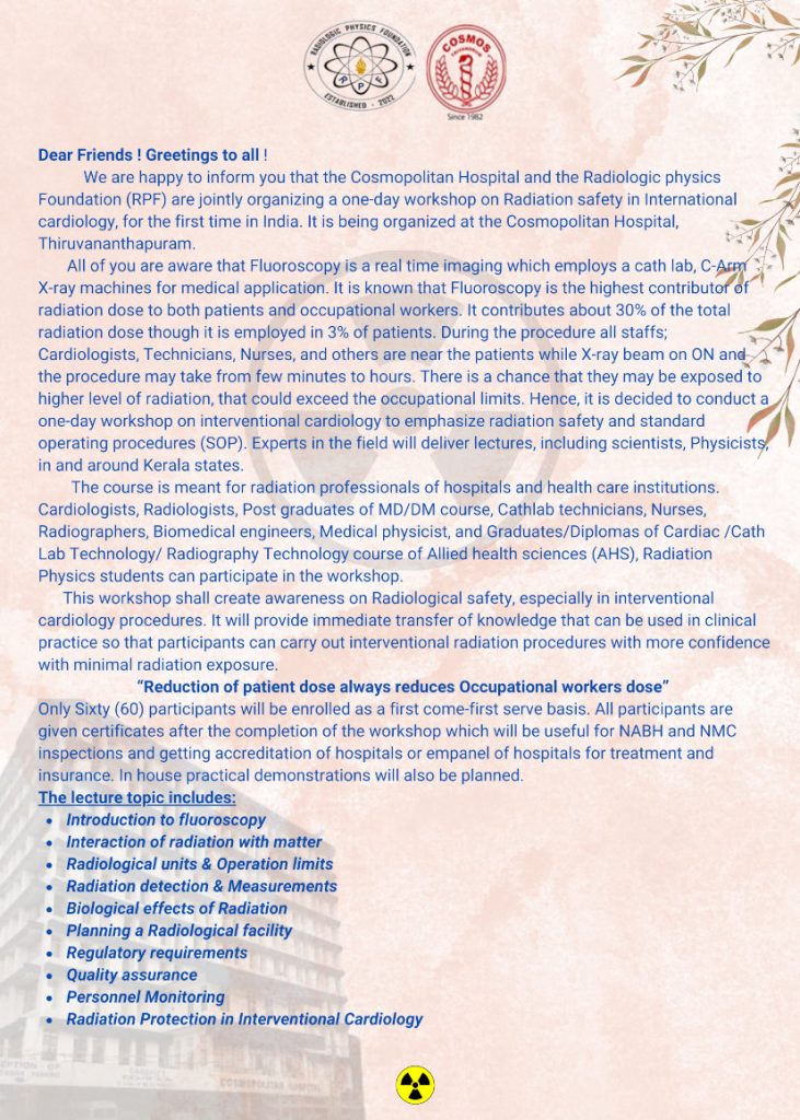 Radiation safety workshop in Interventional Cardiology (RSIC) on Feb 9, 2025